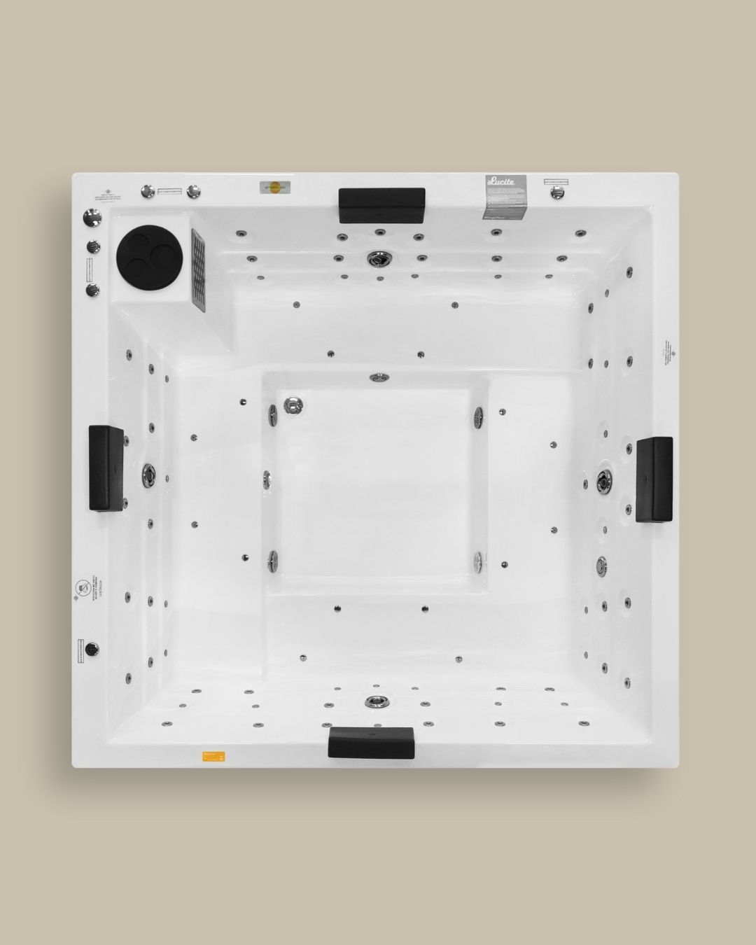 Jatos complementares de Air Blower que proporciona o efeito champagne na água garantindo uma massagem super relaxante.